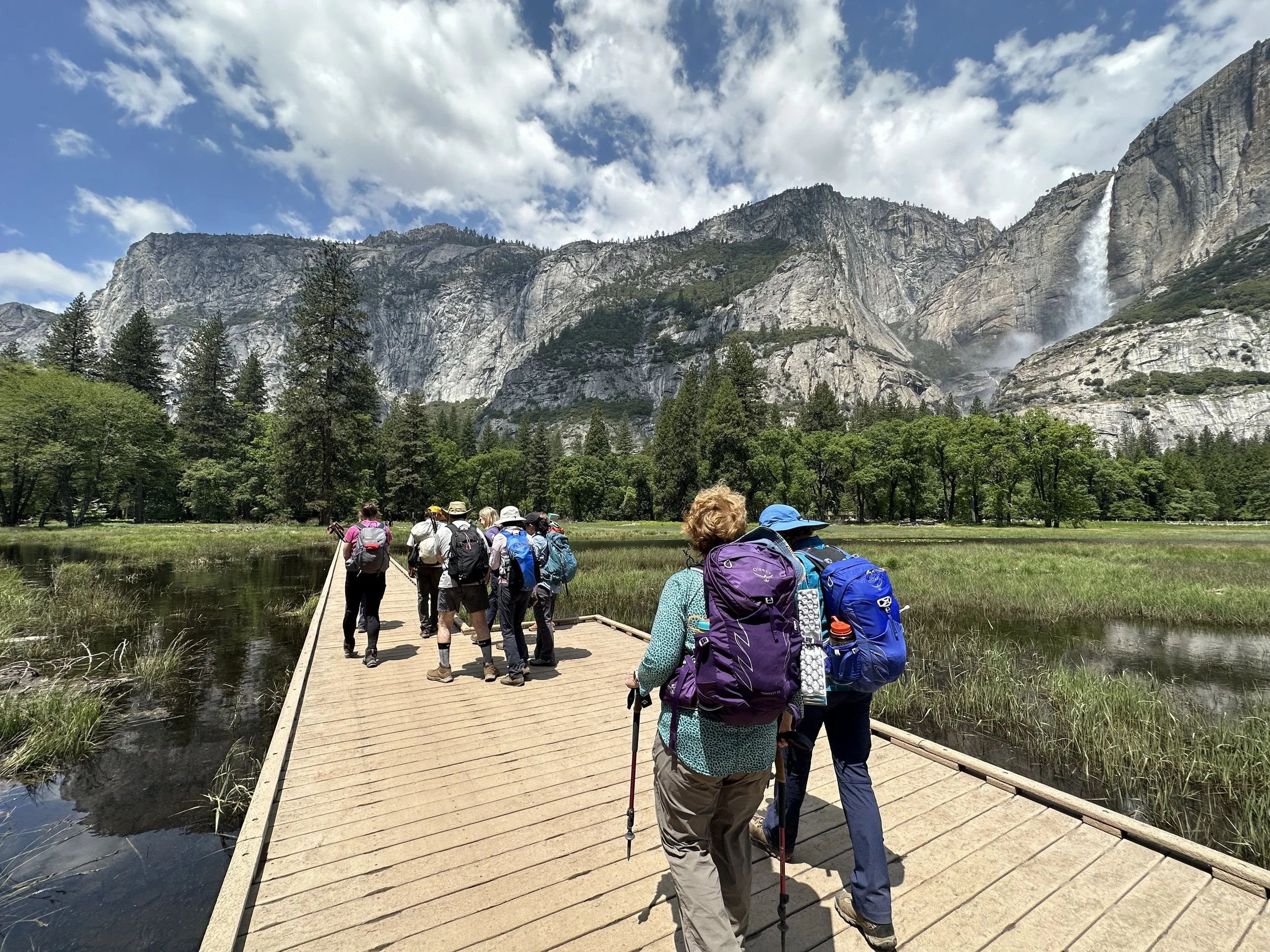 The route eventually joins the famous Mist Trail, where refreshing spray accompanies our final steps into Yosemite Valley. With waterfalls, Half Dome, and the Valley floor unfolding below us, today’s hike is an unforgettable highlight.